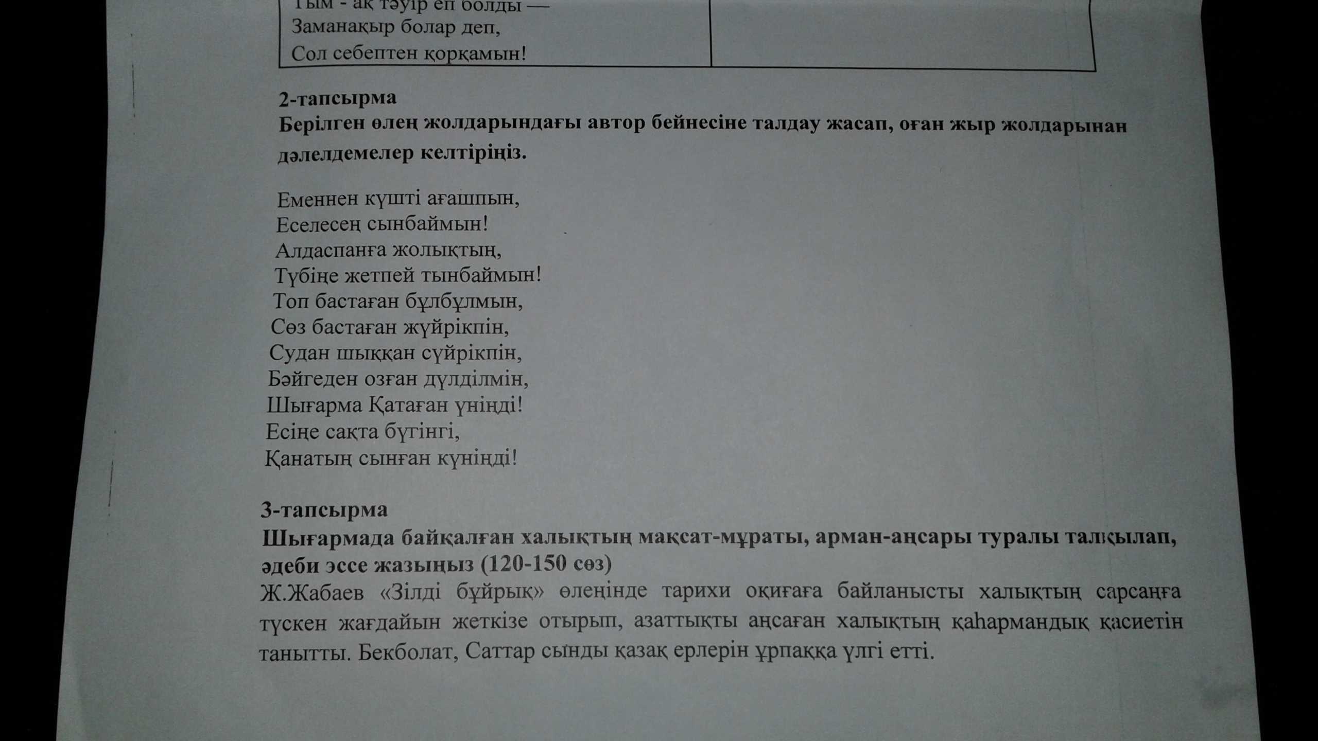 Бұл өлеңде автор өзін мықты ағашқа, бұлбұлға, жүйрік атқа, сүйрікке, дүлдүлге теңейді. Бұл метафоралардың көмегімен ол өзінің мықты, жүйрік, ақылды екенін көрсеткісі келеді.