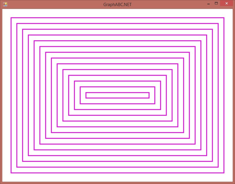 создать программу используя модуль графики graphabc; которая заполняет все графическое окно уменьшающимся к центру прямоугольниками.