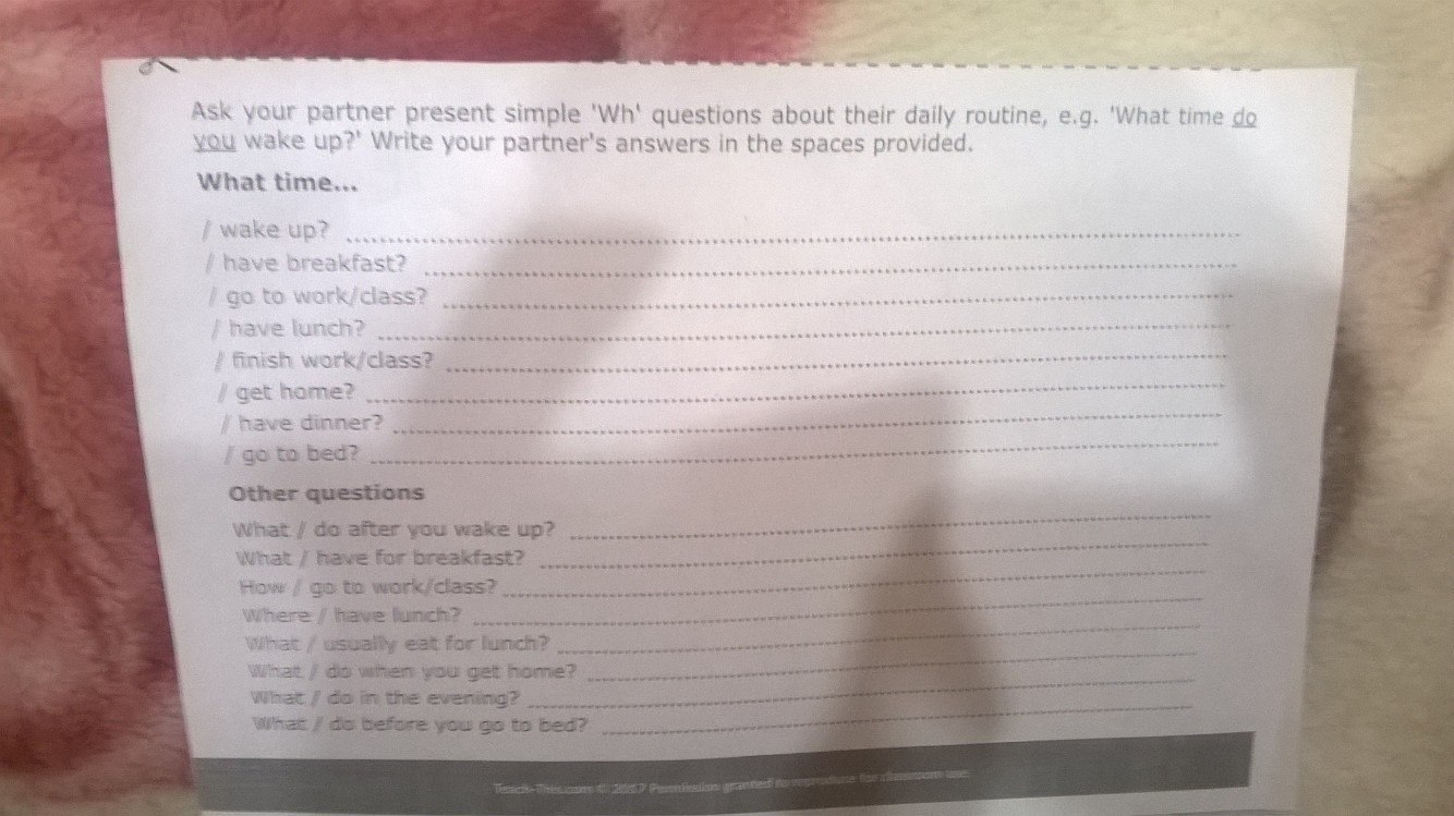 1) What do you do after you wake up?
