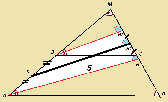 продолжим стороны трапеции AB и BD до их пересечения, пункт пересечения обозначим М,
