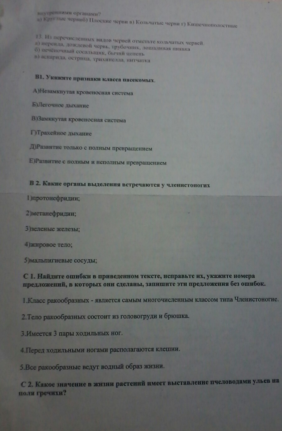 С1-1не ракообразные а насекомые,2 голова, грудь, брюшко,3 4пары, 4нет ошибки,5 не все ракообразные