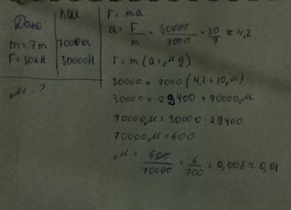 Вес грузовика, включая багаж, составляет 7 тонн, его двигатель может производить до 35 кН. Найдите коэффициент трения между ведущими колесами машины и дорогой