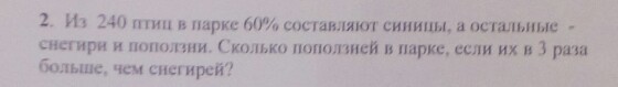 240*40% = 240:100*40 = 2,4*40 = 96 снегирей и поползней.