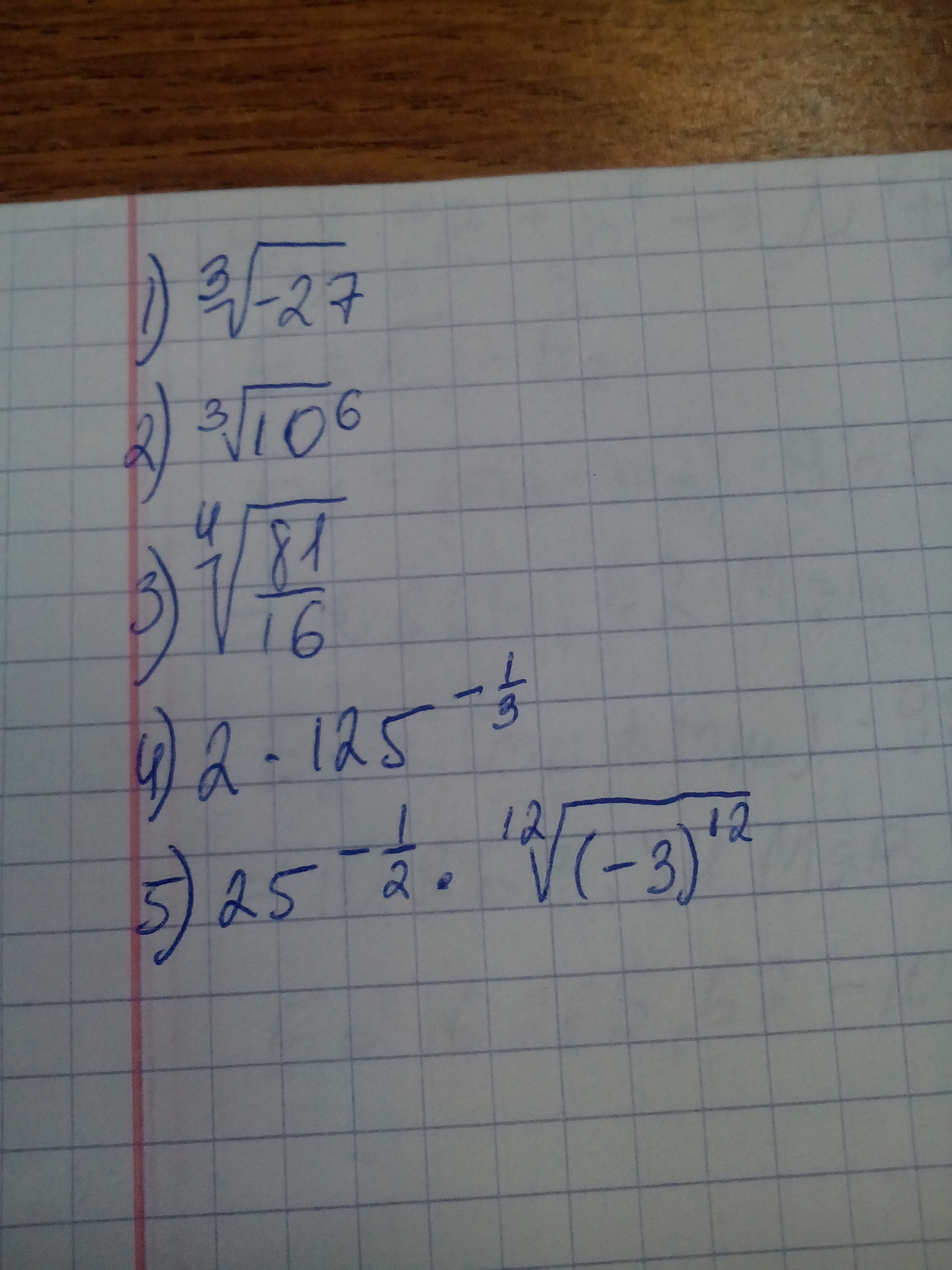 5) √25^1 * 12√(-3)12 = 1/5 *(-3) = -0,6