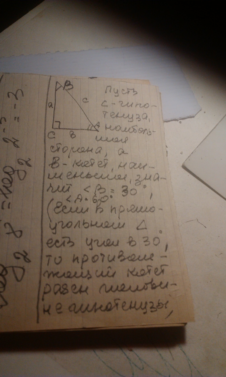 В треугольнике ABC угол С-прямой.Наибольшая сторона в два раза длиннее наименьшей.Укажите градусную меру одного из острых углов треугольника