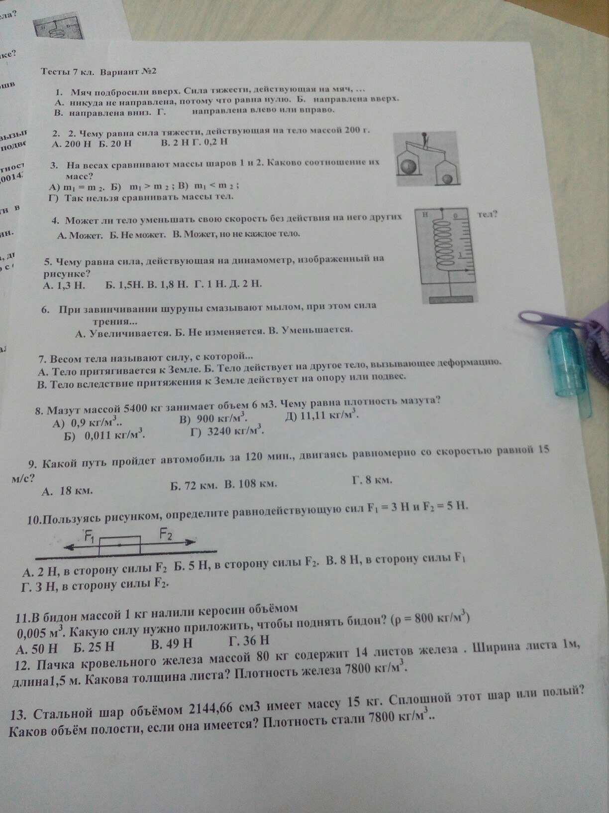 Тест по физике за первое полугодие.Помогите пожалуйста!!!! Срочно!!