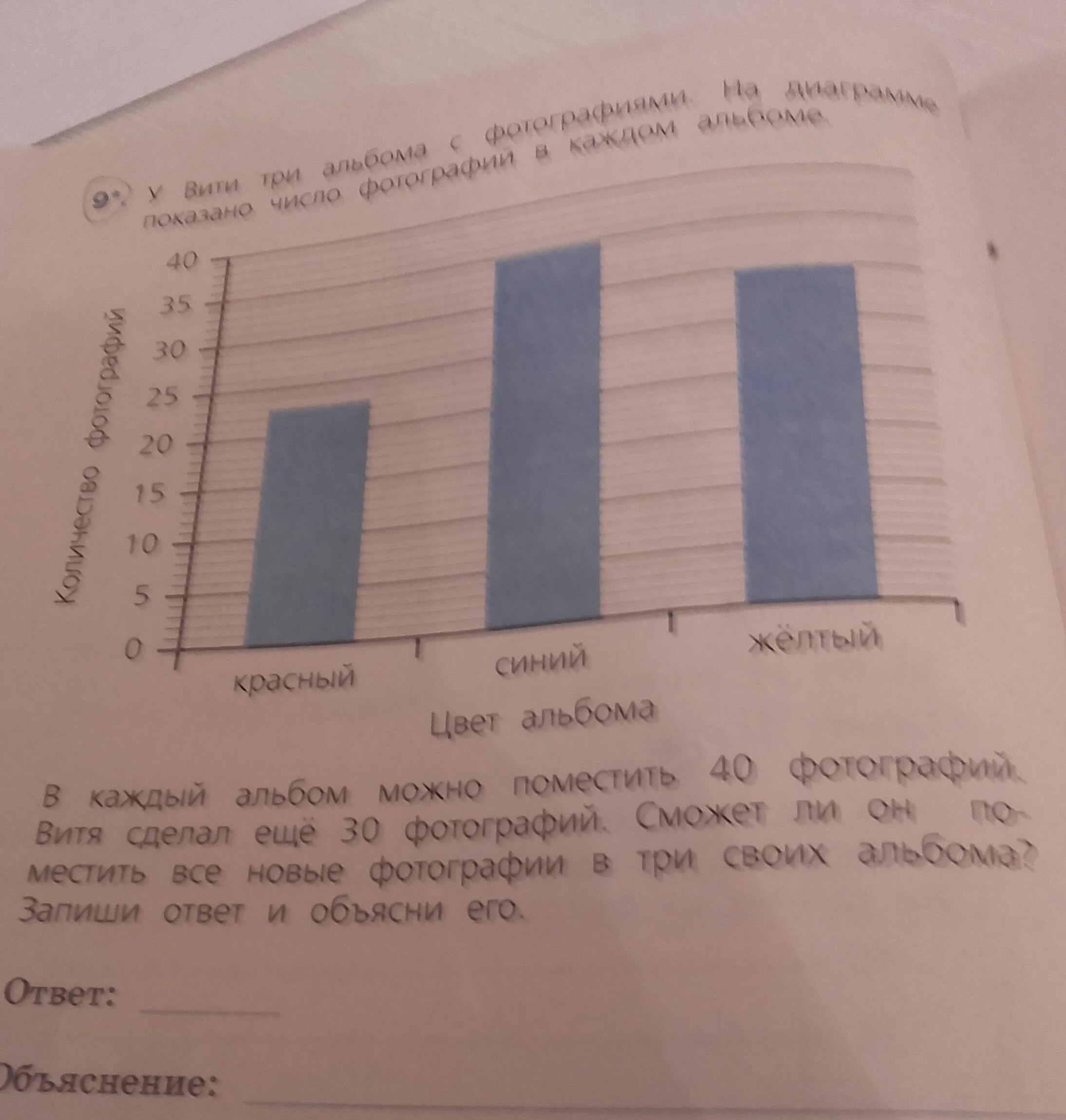 у вити три альбома с фотографиями. на диаграмме показано число фотографии в каждом альбоме.