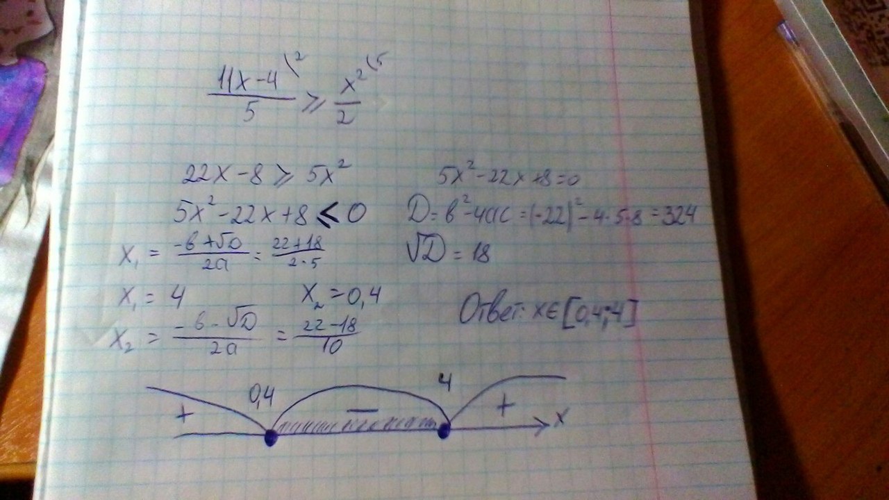 Первое не совсем верно. В третьей сточке решения нужно было поменять сразу знак с "больше или равно" на "меньше или равно". После можно приравнять к нулю и решить как квадратное уравнение через дискриминант. Слишком много лишнего и зачитывается как ошибка. + 25 необходимо перевести в десятичную, т.е в 0,4