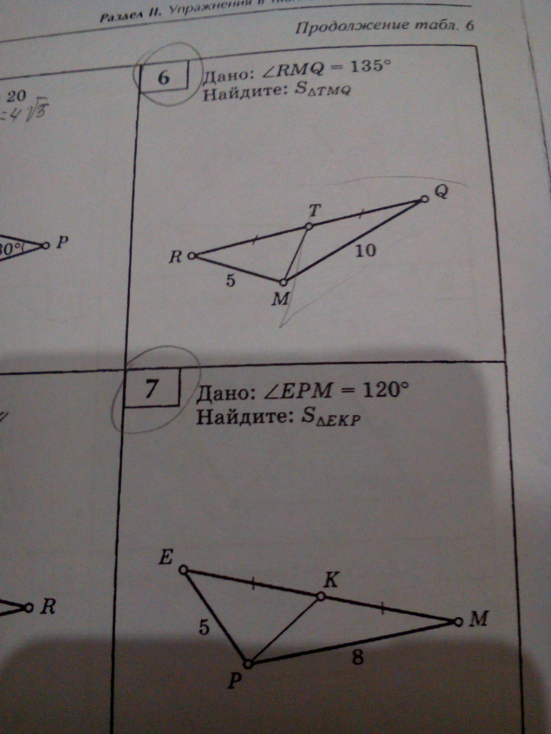 6)S=5*5*sin135(делим на 2)=(25√2)/4