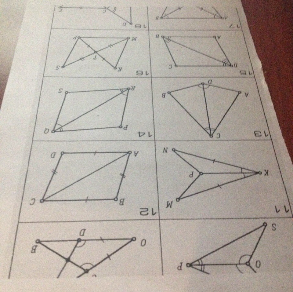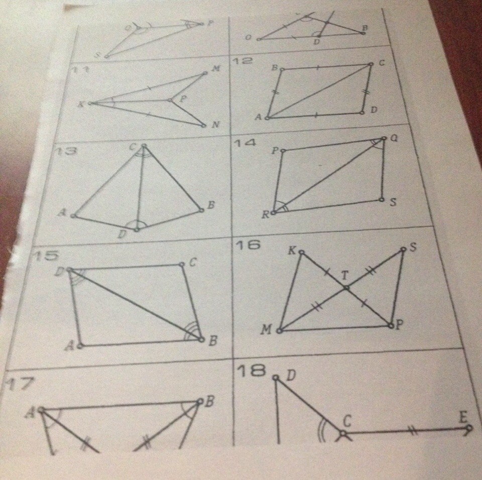 Они почти все равны по двум сторонам и углу между ними ! Там например 2 угла и 1 общая сторона ! Или по 3 сторонам