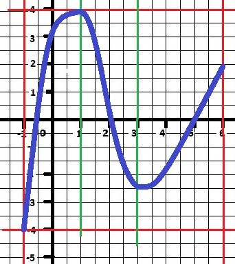 в) функция возрастает на промежутке (-1;1) и (3;6), убывает на (1;3)