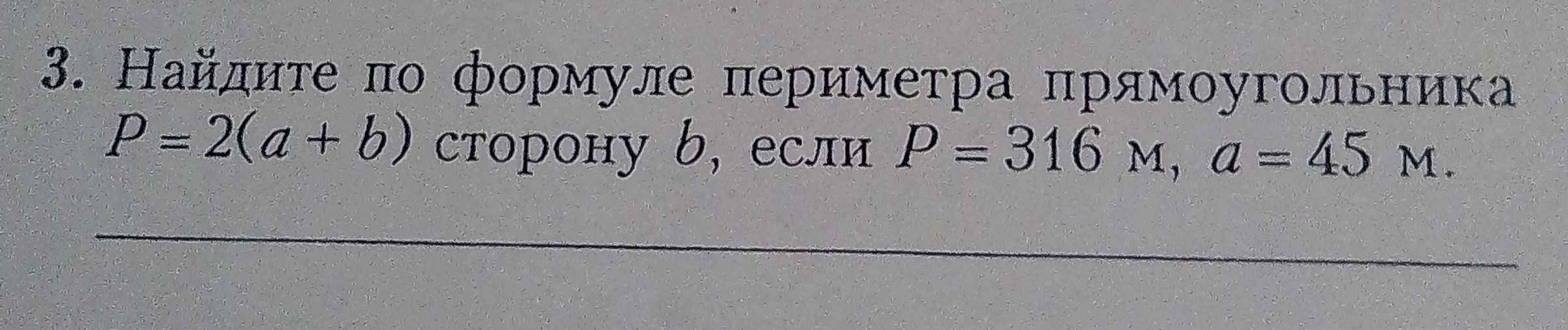 найдите по формуле периметра прямоугольника P= 2 (a+ )' сторону b если P= 316м,a=45м.
