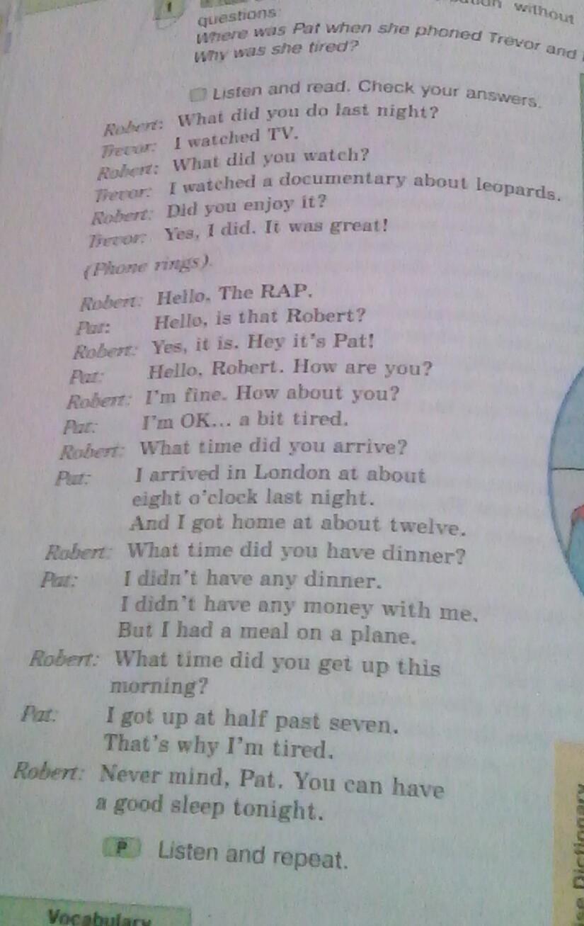 П: Я прибыл в Лондон в восемь часов прошлой ночью. И добрался до дома только в 12