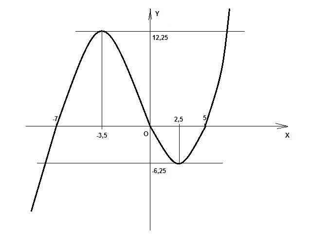 1 вершина x0 = -b/(2a) = 7/(-2) = -3,5; y(-3,5) = -(-3,5)^2 - 7(-3,5) = 12,25