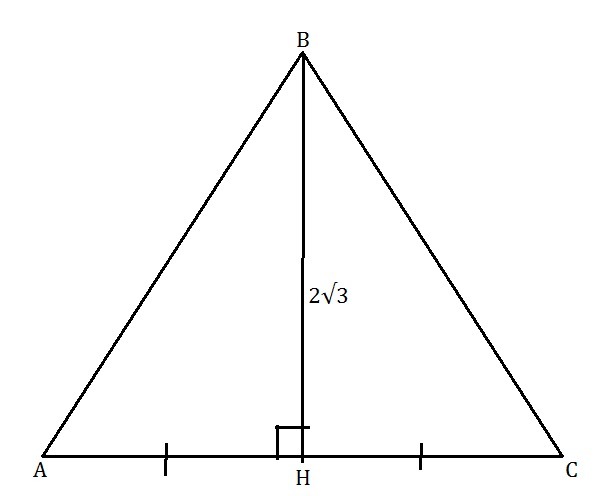 Медиана равностороннего треугольника равна 2 корень из 3. Найти сторону и площадь треугольника.