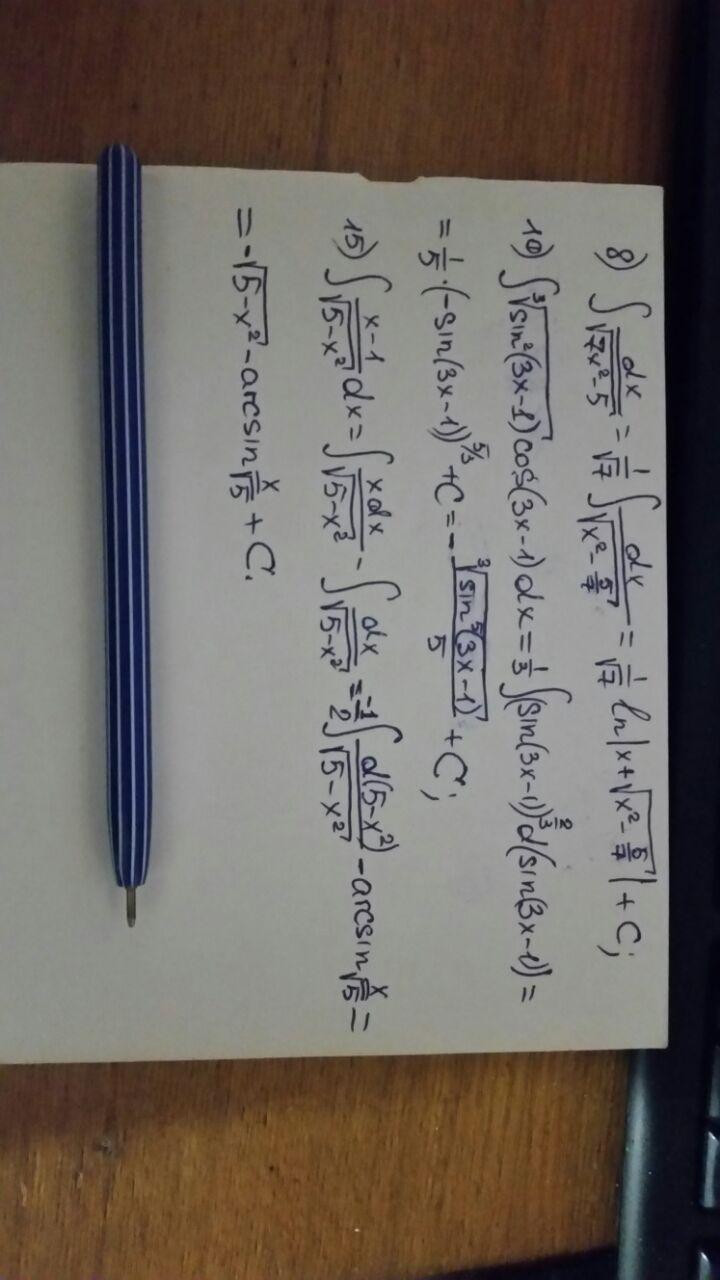 Посмотрите предложенное решение. №8 - табличный; №10 - использовалось подведение под знак дифференциала; №15 - разбиение интеграла на сумму простых с последующим взятием каждого "слагаемого".