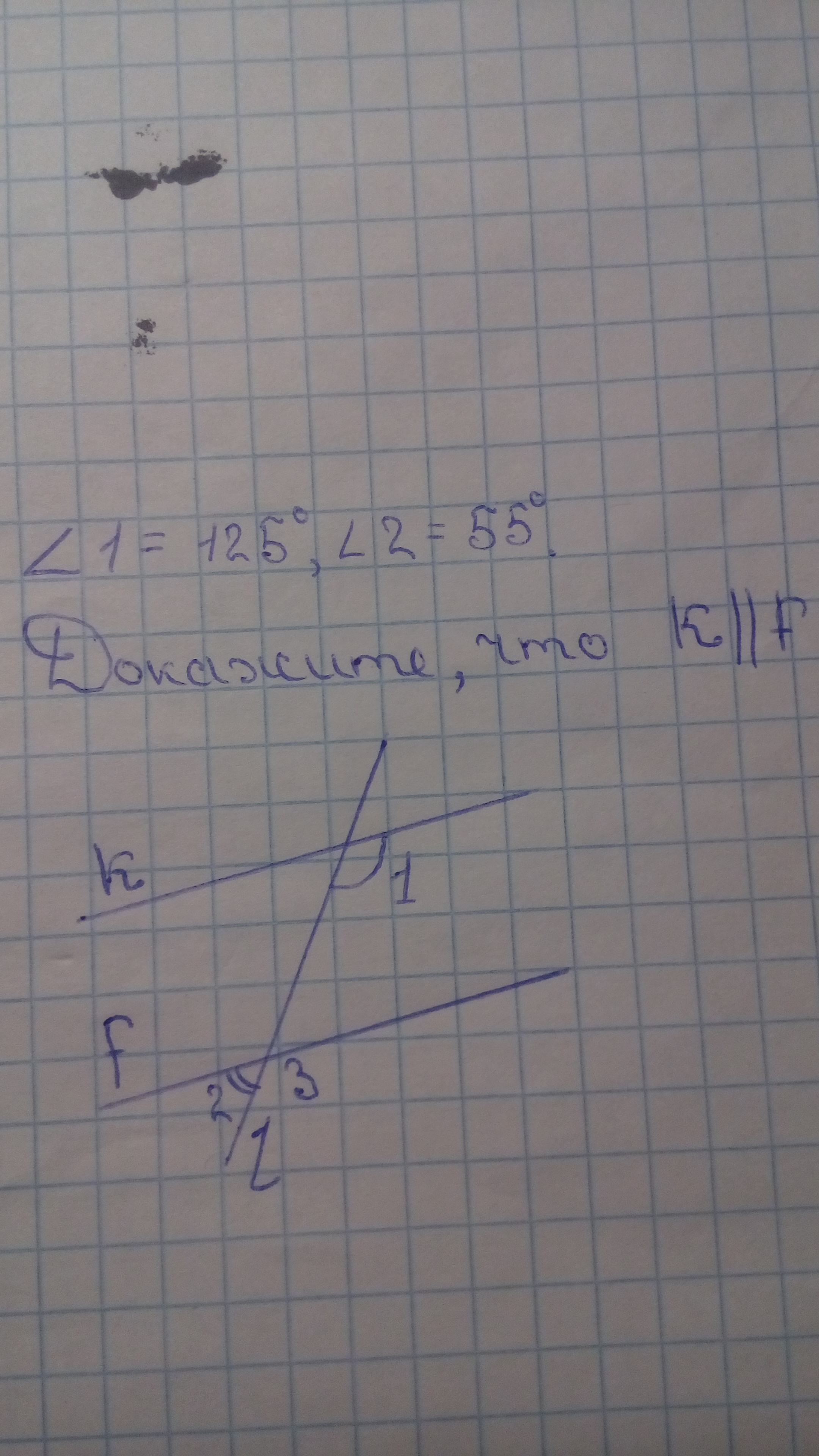 Нужно из 180 градусов вычесть второй угол, равно 125 градусов- это угол 3. Далее просто нужно воспользоваться свойством параллельности прямых: если соответственные углы равны, то прямые параллельны друг другу.