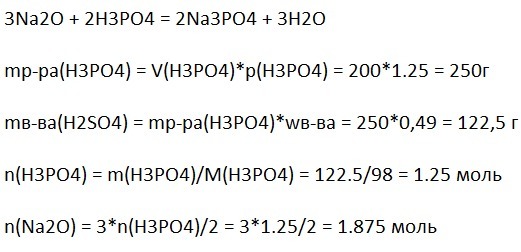 Сколько граммов оксида натрия можно растворить в 200 мл 49%-ного раствора фосфорной кислоты с плотностью 1,25 г/мл? (Реакция обмена)