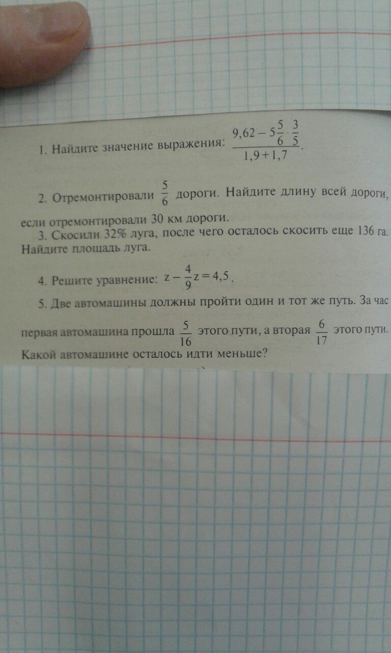 2. 5/6 дороги - 30 км, вся дорога - х км