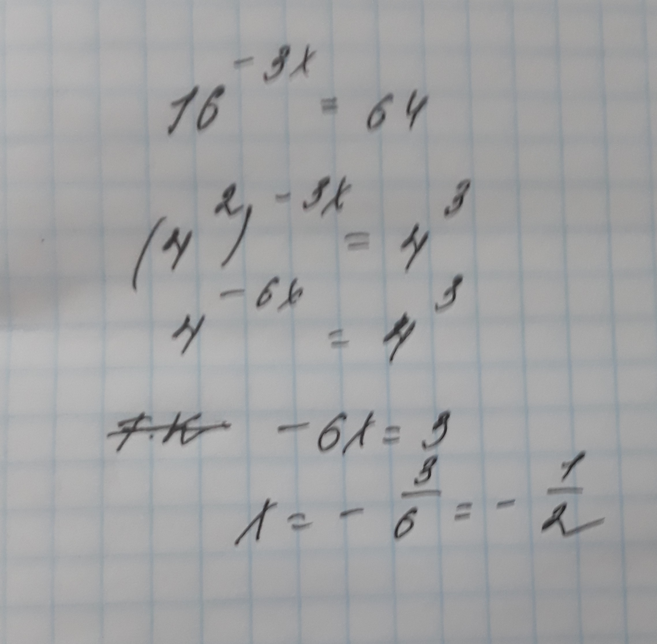 (2^4)^-3x=2^6; 2^-12x=2^6; -12x=6; x=6/(-12)= -1/2. Ответ: x= -1/2.