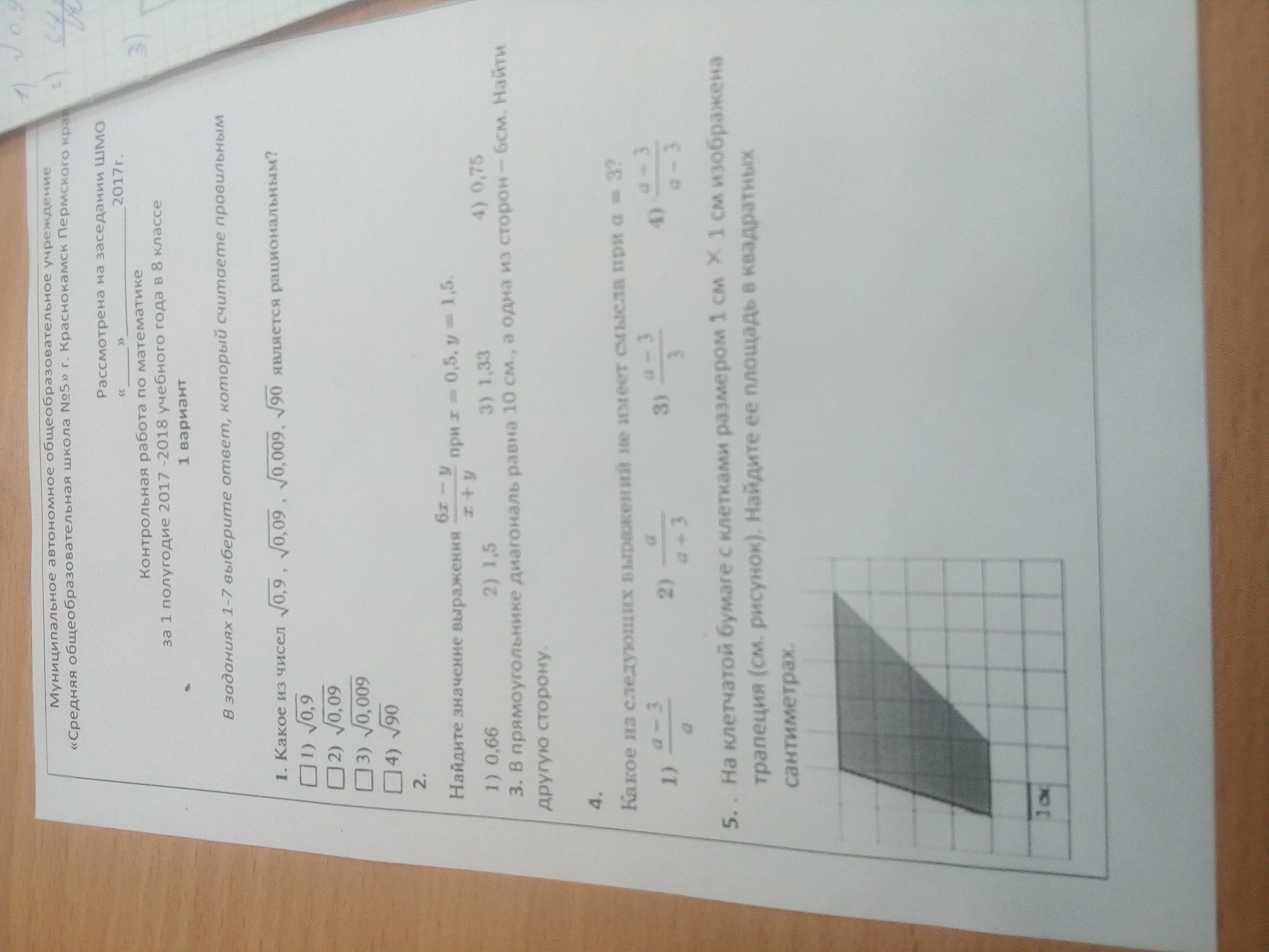 5. Площадь трапеции равна полусумме оснований на высоту:
