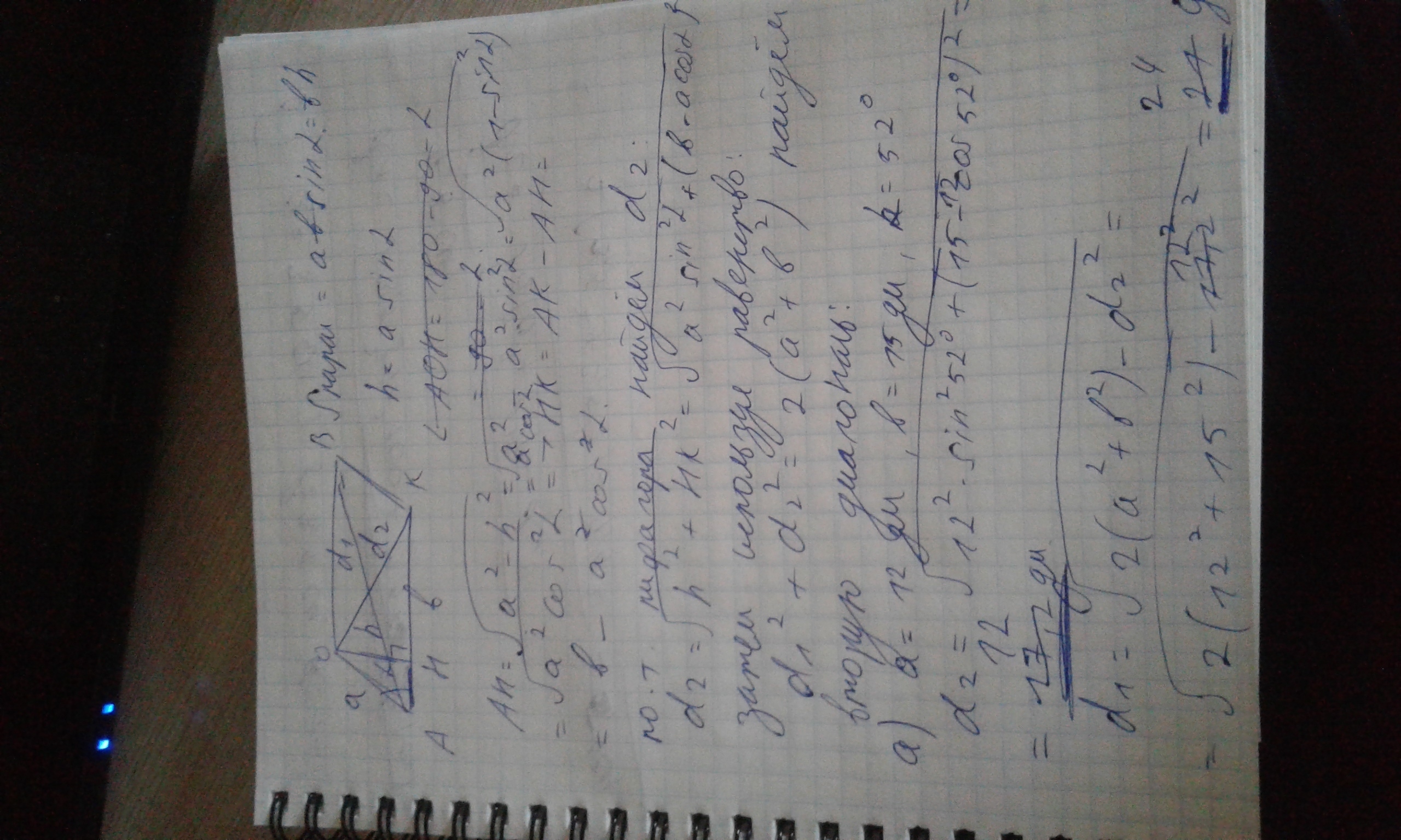 Вычислите диаганали параллелограмма, если известны его стороны и угол между ними