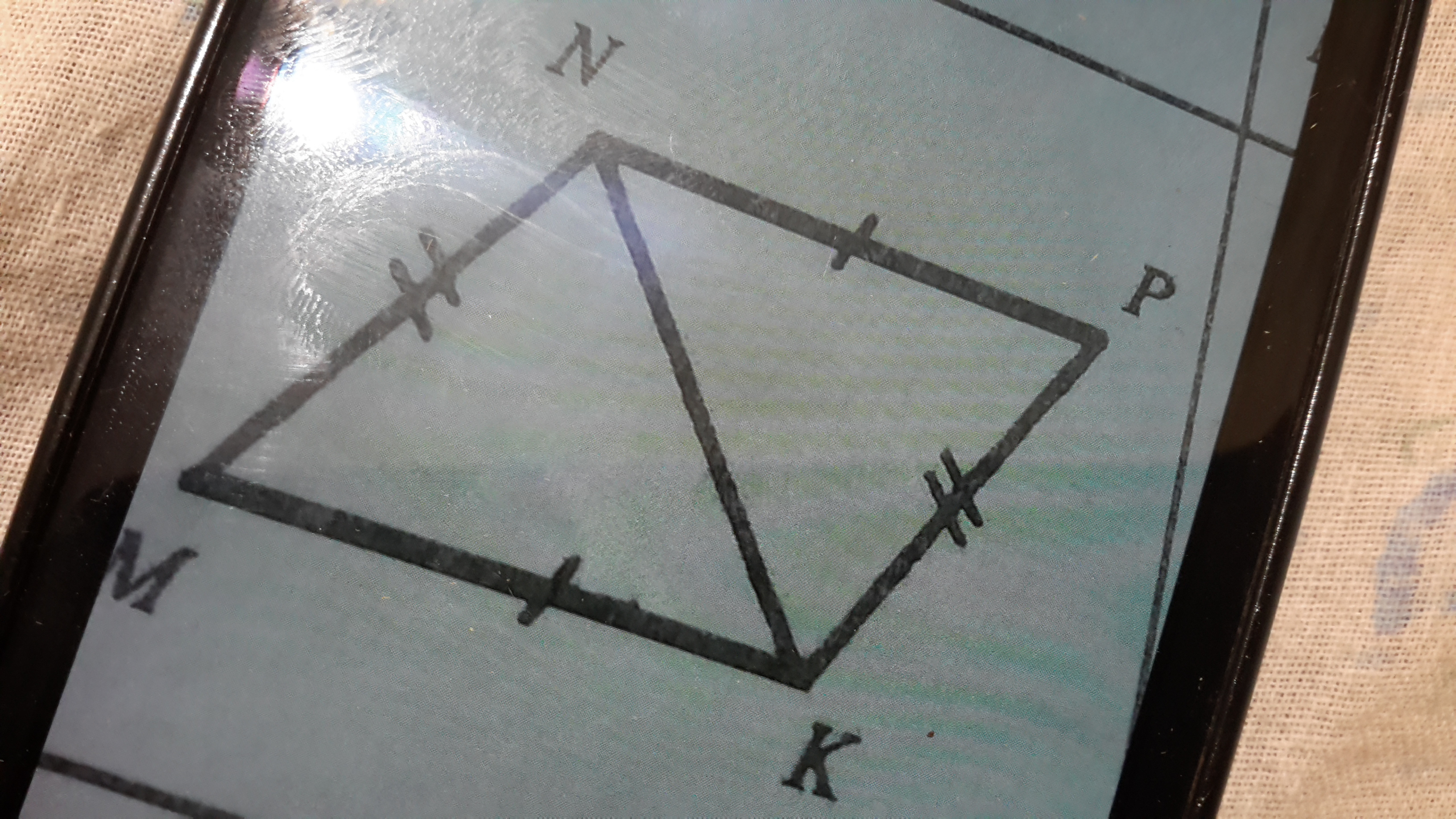 Треугольник MNK = треугольник NKP (MN=KP, NP=MK, NK - общая)