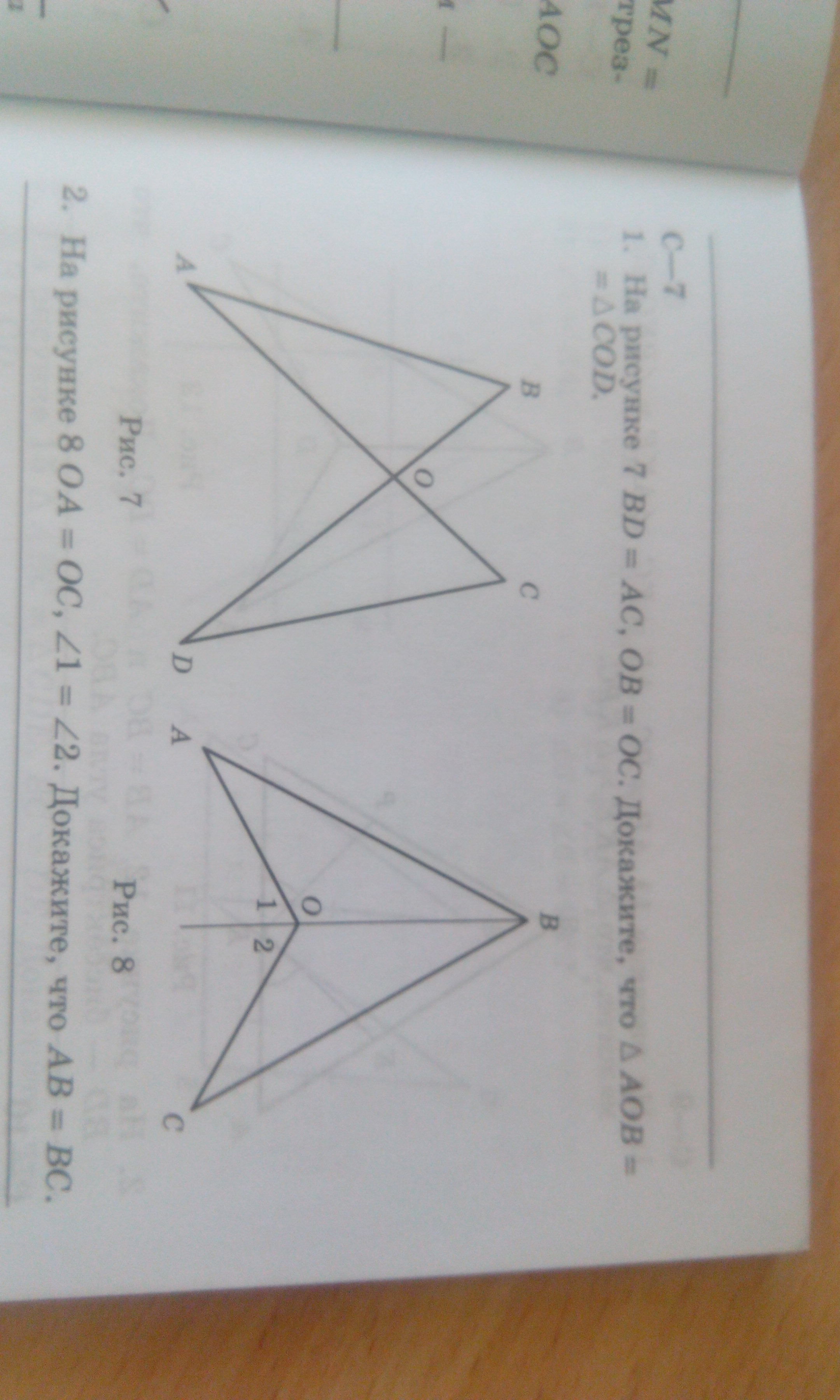 BD=AC Т.к AC=BD и OC=OB⇒AO=OD. ⇒Треугольники равны