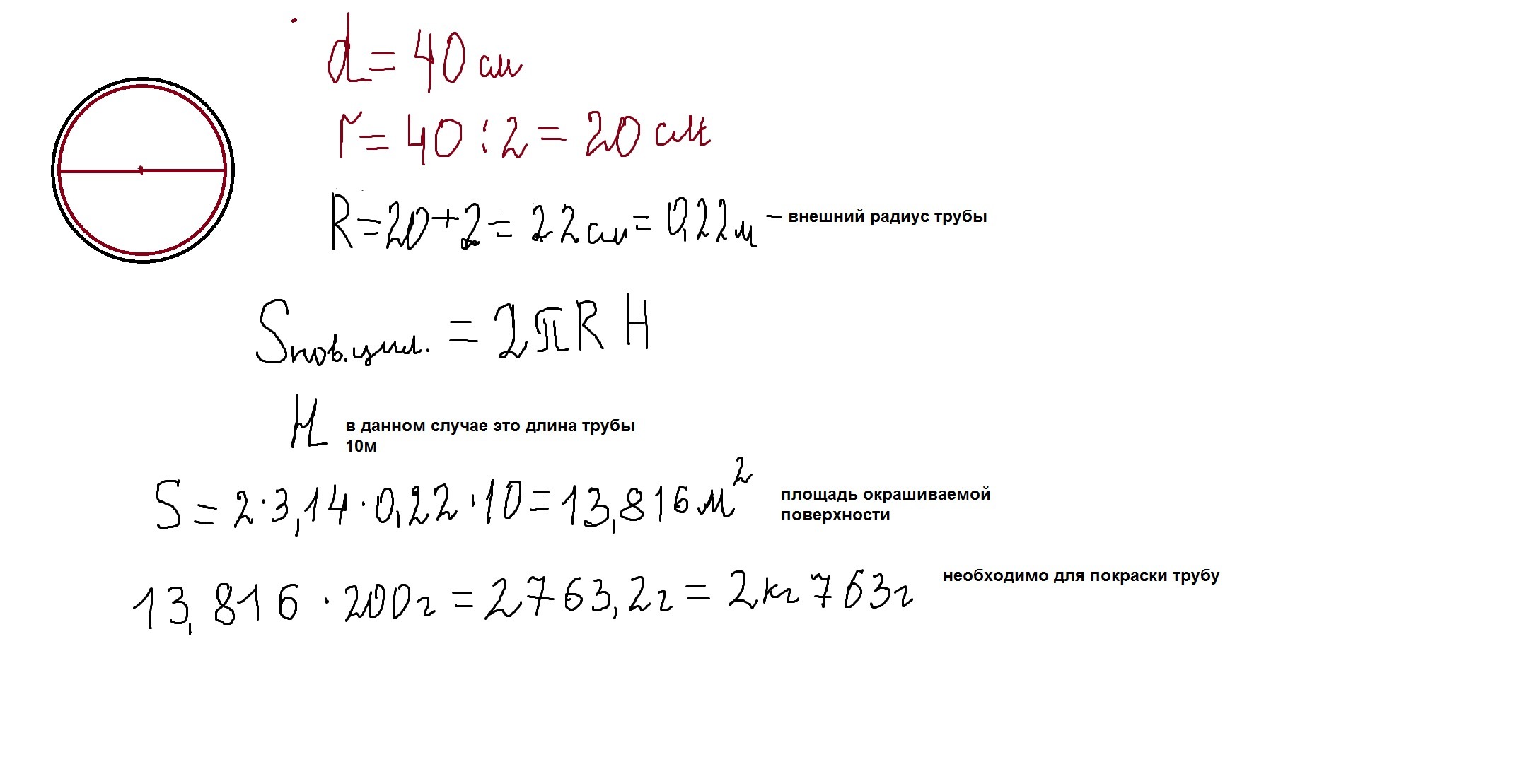 Хватит ли 2,5 кг краски , чтобы покрасить снаружи 10 м этой трубы ,