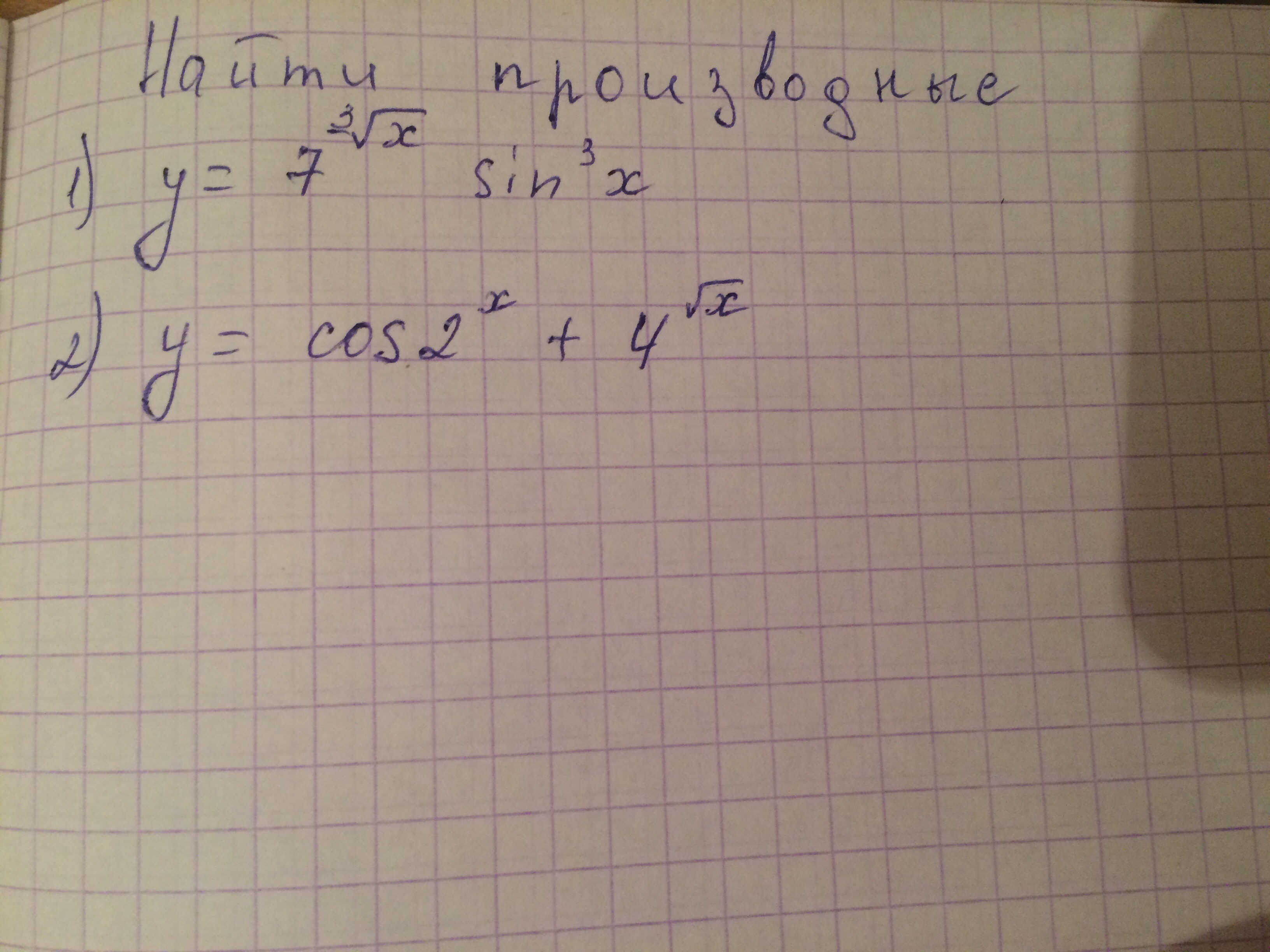 {7^{sqrt[3]{x}} * ln 7 * sin xover 3sqrt[3]{x^2}} + 7^{sqrt[3]{x}} * cos x](https://tex.z-dn.net/?f=%287%5E%7Bsqrt%5B3%5D%7Bx%7D%7D+%2A+sin+x%29%27%3D%287%5E%7Bsqrt%5B3%5D%7Bx%7D%7D%29%27+%2A+sin+x+%2B+7%5E%7Bsqrt%5B3%5D%7Bx%7D%7D+%2A+%28sin+x%29%27%3D%5C%0A%3D+%28sqrt%5B3%5D%7Bx%7D%29%27+%2A+7%5E%7Bsqrt%5B3%5D%7Bx%7D%7D+%2A+ln+7+%2A+sin+x+%2B+7%5E%7Bsqrt%5B3%5D%7Bx%7D%7D+%2A+cos+x%3D%5C%3D%0A%7B7%5E%7Bsqrt%5B3%5D%7Bx%7D%7D+%2A+ln+7+%2A+sin+xover+3sqrt%5B3%5D%7Bx%5E2%7D%7D+%2B+7%5E%7Bsqrt%5B3%5D%7Bx%7D%7D+%2A+cos+x)