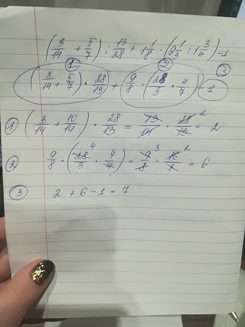 Если распределить это выражение на 3 действия, то получится следующее, надеюсь, что правильно