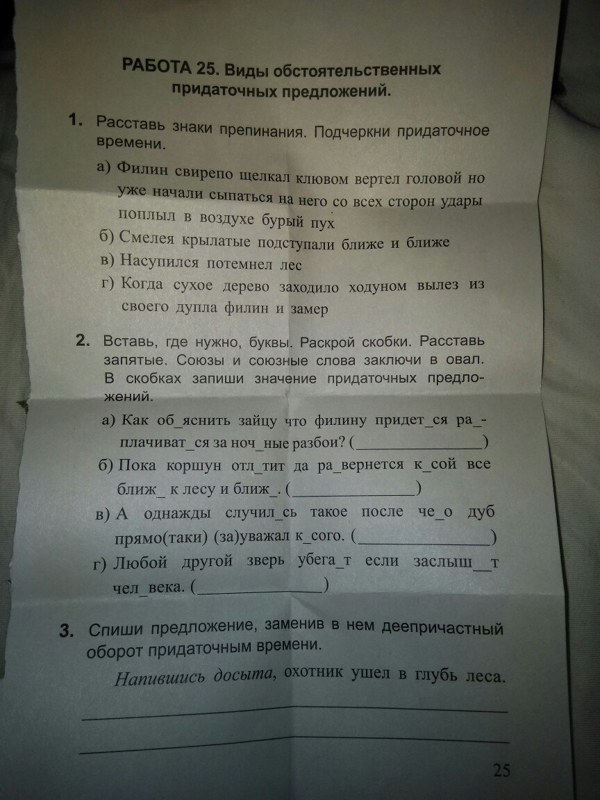 1. а) Филин свирепо щёлкал клювом, вертел головой, но уже начали сыпаться на него со всех сторон удары, поплыл в воздухе бурый пух.