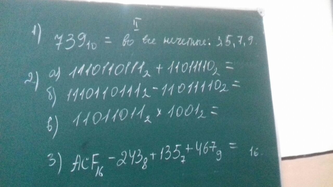 739 (10) = 1000101 (3) = 10424 (5) = 2104 (7) = 1011 (9)