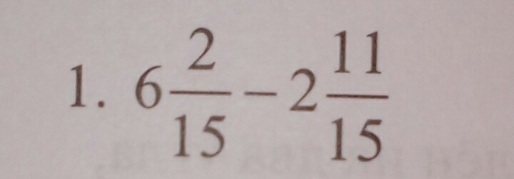 6 2/15 - 2 11/15 = 92/15 - 41/15 = 51/15 = 3 6/15 = 3 2/5