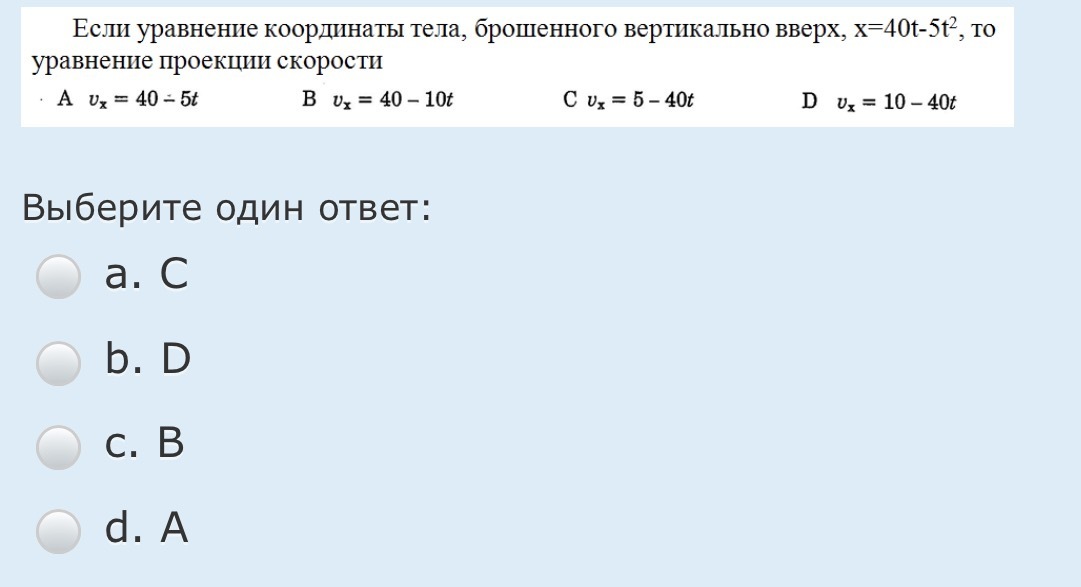 x=V0*t-(g/2)t^2; Vo=40м/с; (g/2)=-5; g=-10