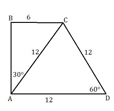 так как угол A=90°(прямоуг. трапеция) => угол BAC=90-угол DAC=90-60=30°. В треуг. ABC AC - гипотенуза. А катет, лежащий против угла в 30° равен половине гипотенузы => BC=(1/2)*AC=12/2=6