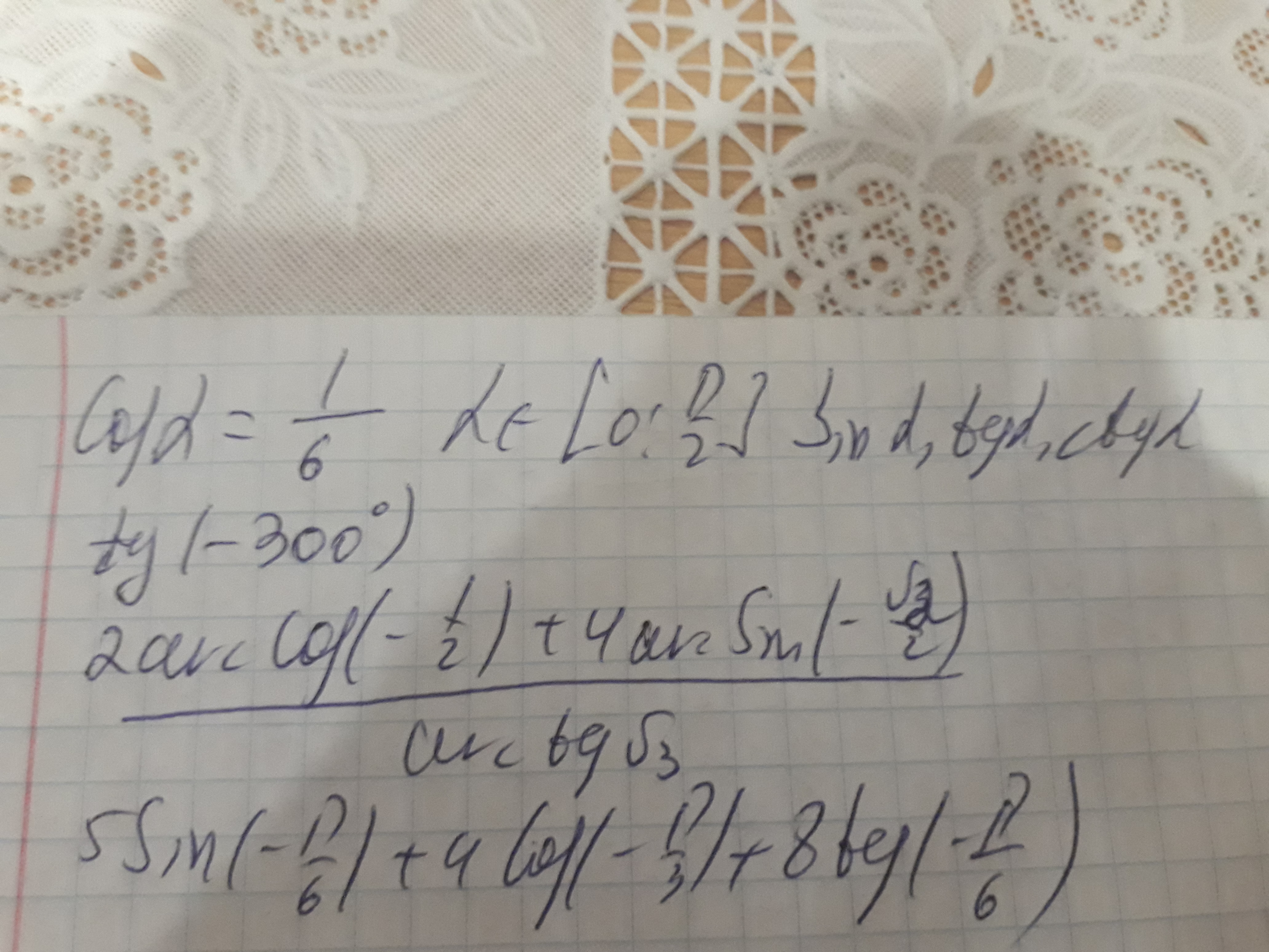 sin^2a=1-cos^2a=1-1/36=35/36 a принадлежит [0;П/2] sina>0 sina=|35/6