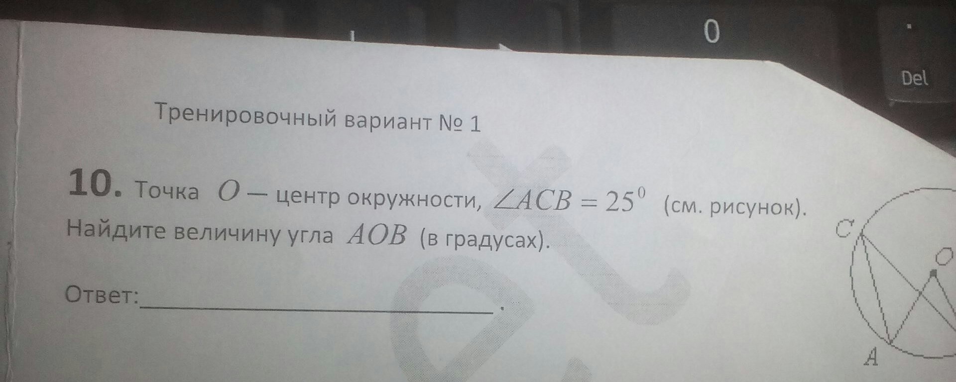 АОВ центральный отсюда следует что АОВ=АВ=50*