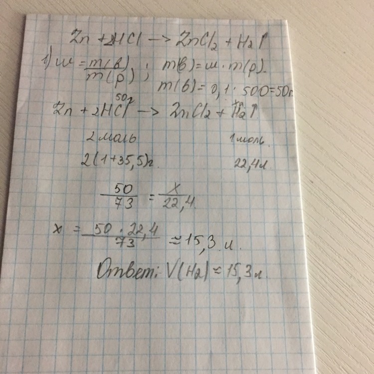 Какой объем водорода получится в реакции цинка с соляной кислотой?