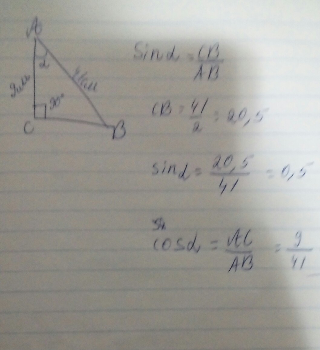 3.Найдите синус и косинус угла А прямоугольного треугольника АВС, если угол С равен 90®,АС=9см, АВ=41см. Даю максимальное количество Баллов которые есть....