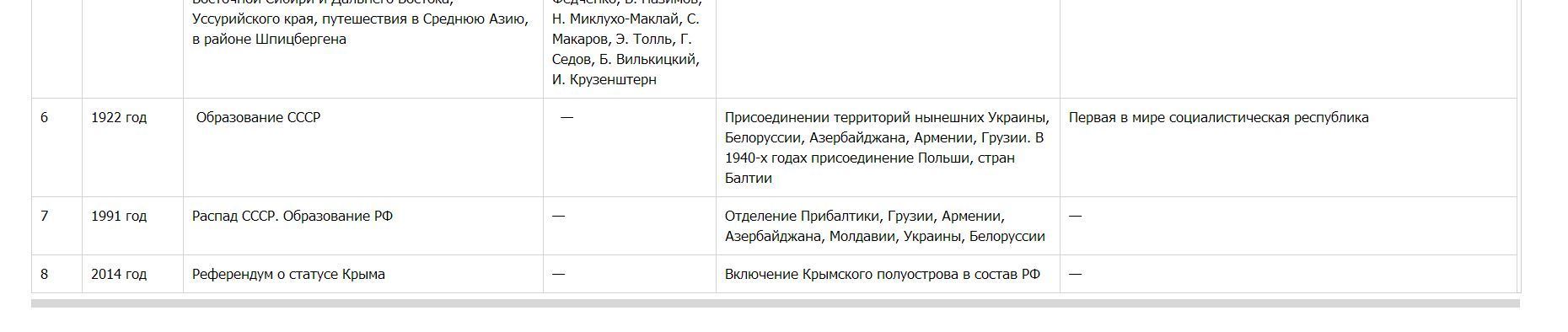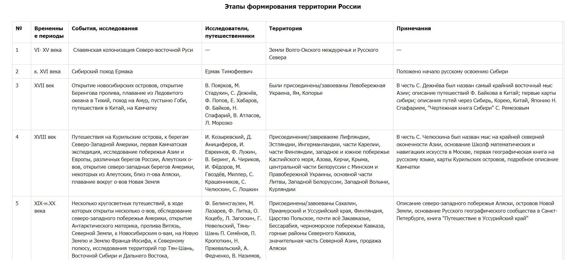 Составьте таблицу "Этапы формирования территории России" со следующими колонками: время, события и исследования, исследователи, присоединенные территории.