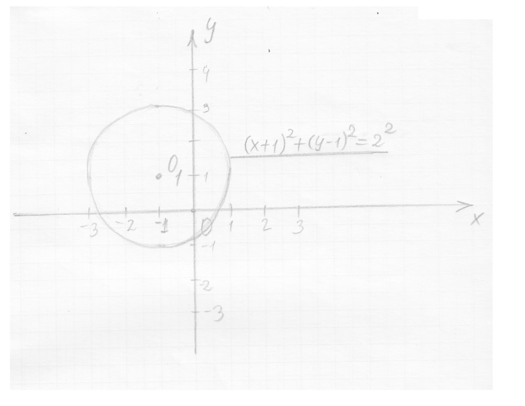 Это окружность с радиусом 2. Центр окружности О₁(-1;1)