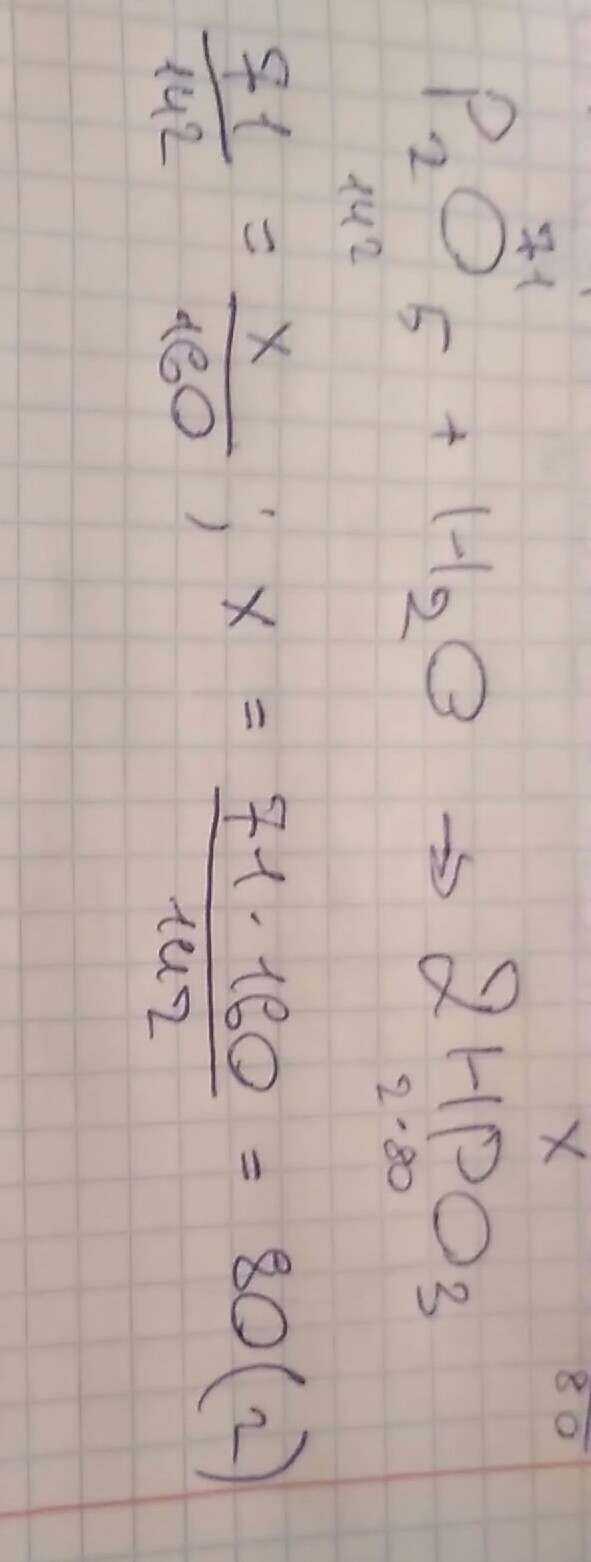 обчисліть масу метафосфатної кислоти що утворюється при взаємодії фосфор(5)оксиду масою 71г. з водою