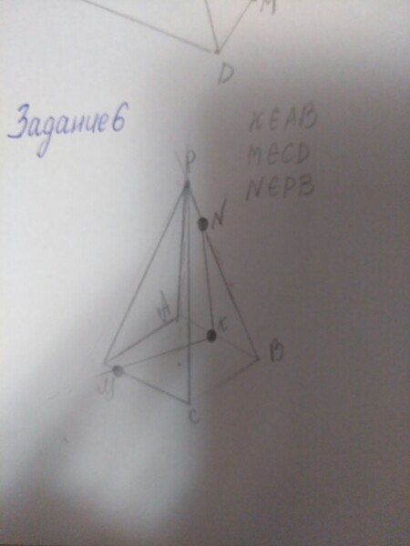 Помогите построить сечение четырехугольной пирамиды по заданным точкам