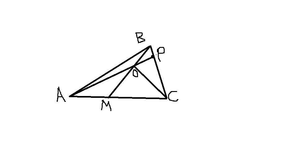 Точка Р принадлежит стороне ВС треугольника АВС и делит ее в отношении ВР:РС=2:5. Точка М принадлежит стороне АС. Отрезки АР и ВМ пересекаются в точке О так, что ВО:ОМ=1:2. Найдите, в каком отношении точка М делит сторону АС.