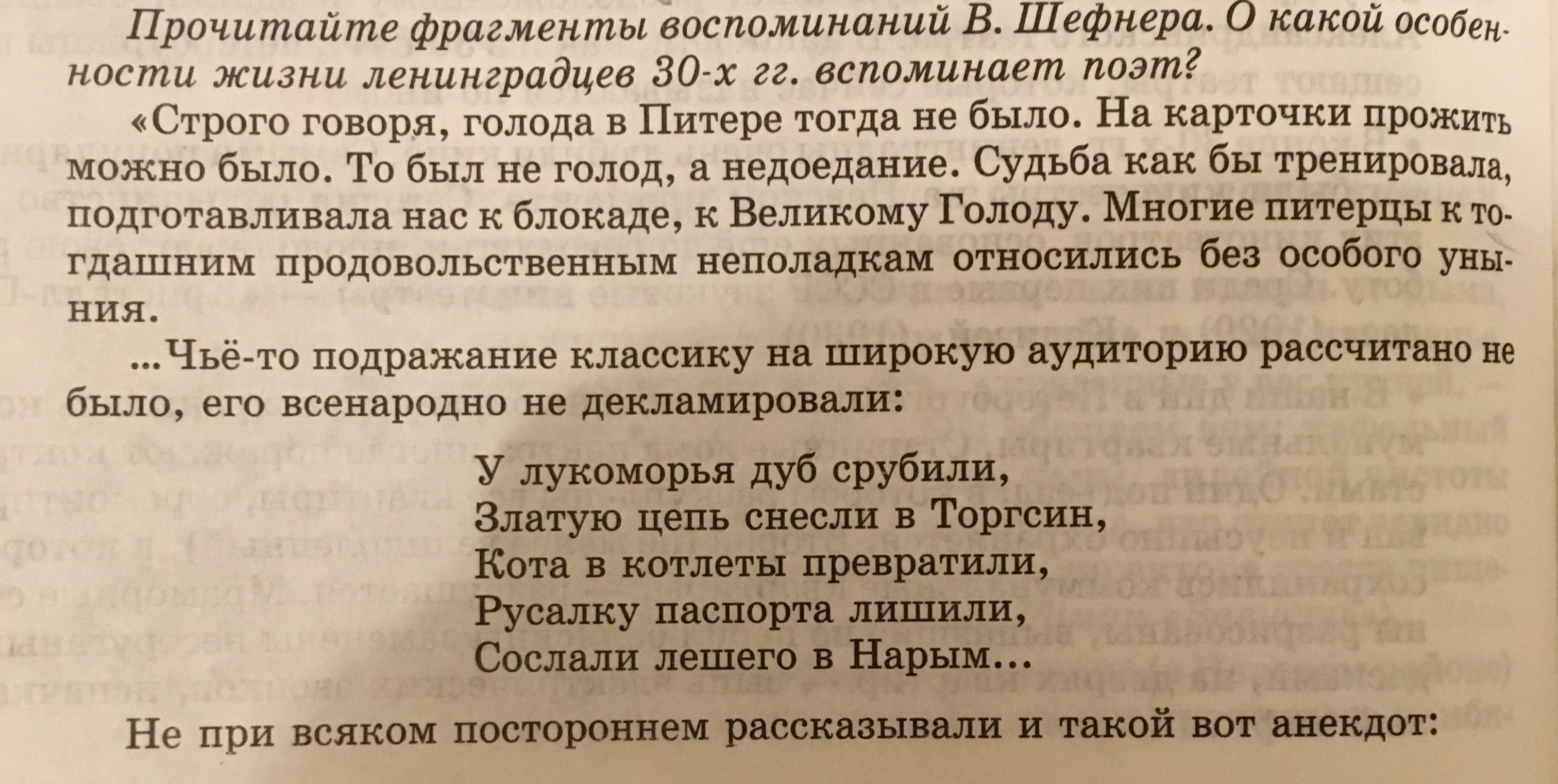 Прочитайте фрагменты воспоминаний В.Шефнера. О какой особенности жизни Ленинградцев 30-х гг. Вспоминает поэт?