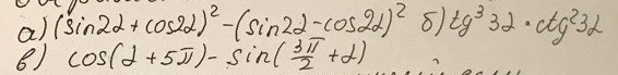 a) (sin(2a)+cos(2a))^2-(sin(2a)-cos(2a))^2=sin^2(2x)+ 2sin(2a)-cos(2a)+cos^2(2a)-sin^2(2a)+2sin2(2a)cos(2a)-cos^2(2a)=4sin(2a)cos(2a)=2sin(4a)