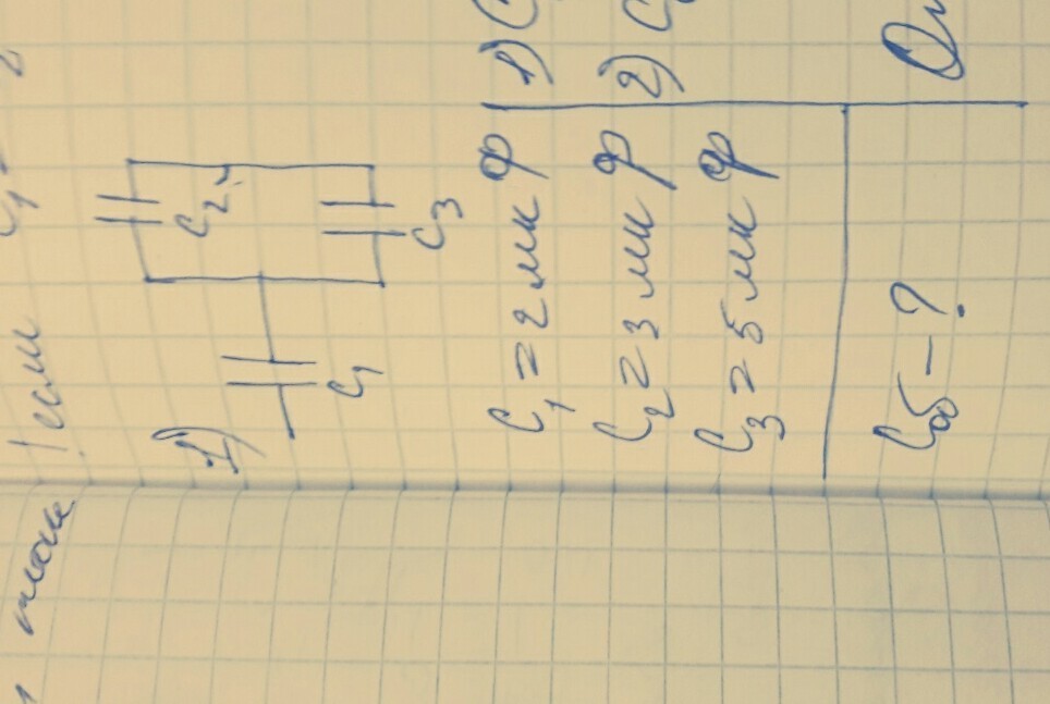 1/С(общ.)=1/С+1/С1=1/8мкФ+1/2мкФ=1.6мкФ