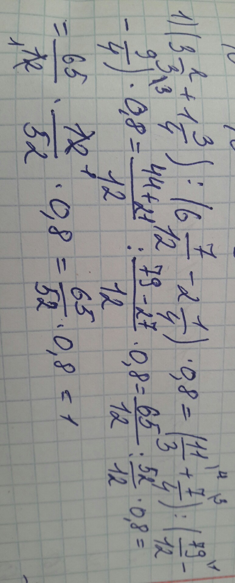 Вычислите значение выражения:1)(3 2/3+1 3/4):(6 7/12-2 1/4)*0,8;2)(4 2/5:1 3/5+2 4/7-8 12:14):(2 3/8-1 11/14).Помогите плиз.Нужны решения и ответы.Плиииииииз.