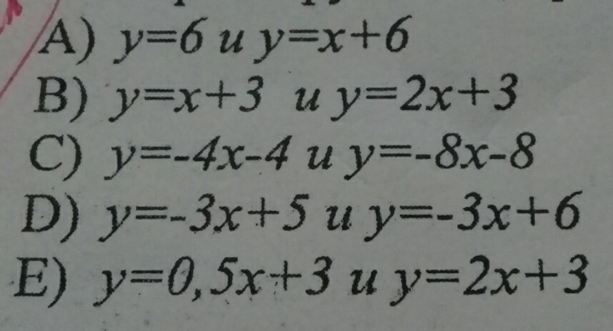 В)у=х+3 у=2х+3 х+3=2х+3 х-2х=3-3 -х=0 х=0